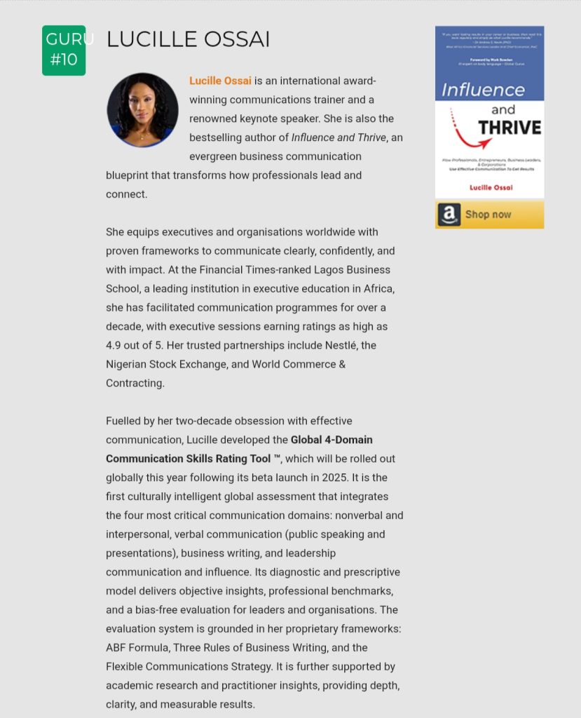 Specificity is often glossed over. Yet, knowing how to infuse it in your writing and speaking guarantees your pervasiveness and delivers results. In this insightful article, Lucille Ossai, an international award-winning communications trainer, gives you rock-solid reasons to prioritise specificity and explains how to proceed. Share widely.